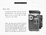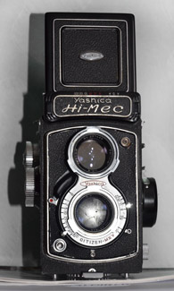 One more mystery remains. “Yashica” models are clearly identified by the model name on the nameplate, in this case “Hi-Mec”. “Yashicaflex” models have no identification of model name except for the early Yashicaflex C which has “Model C” near the feed spool inside the base of the camera. Jean-Marie's camera has this in the same place:
