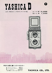 Note: Most/all Japanese brochures (including the one further below) and the user manual, linked above, show the camera with a hood logo. Either the photos are of an export Yashica A (there is plenty of evidence of Yashica cutting costs by using existing images), or the deletion of the hood logo was a last minute decision.