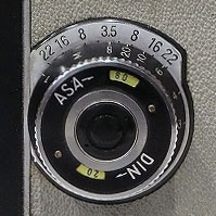 Whilst most early Yashica As have feet scales (those with metre focusing scales had the 10 flag DIN film speed reminder and were certainly Europe bound), all of the Yashica A III types have a metre focusing scale whilst the last four in my database have dual scale focusing knobs. All seem to have the later combined DIN/ASA film speed reminder on the film winding knob.