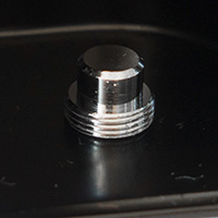 Then with the last black kit, the four painted screws in the bottom of the film guide unit (as in the right photo immediately above) are now plated cross head types. Also, with probably the first black kit above but certainly by the second black kit (last type), the female threaded 35 mm spool support has been modified. In the parts diagram above found in the earlier three user manuals, it is “(9) Metal Adapter Ring” and in the final manual it is described as “(10) Spacer Ring”. In the two earlier kits, the threaded insert is clearly brass whereas in the first black kit above (there may be two versions of the black kit too, one with some earlier parts) it is silver - either plated or aluminium. Also, whereas previously the outer part had a hollow with a central pin or shaft to hold the 35 mm cassette shaft, the centre pin part has been eliminated (it served no useful purpose) and the threaded insert is open at both ends. This has no impact on any other parts or the functionality of the cassette support. First two images are bottom and top views of the earlier spacer, the third image is top view of the last type spacer: