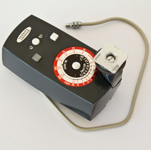 The “Synchron” series was available in three models; the “Professional” and “Master” using “D” cells and the “Junior” using “C” cells. Some accessories were interchangeable but the Master was more professional than the Junior with, for example, a greater range of reflectors available, and “less plastic” (the only plastic I am aware of is the black band at the top of the cylindrical body of the Junior). The two prong connectors were also different with the Junior using round pins and the larger flash guns using flat pins versions. There was a range of brackets for securing the flashes to the tripod sockets of cameras including generic types, generic TLR types and specialised Rollei fittings (with integral tube clamp, probably only available in the larger size). Slave units were available for both the Junior and larger models as were various leads and connectors to suit different types of flash sockets in use at the time. Today, the Junior is the most commonly found model on auction sites etc. Accessories are very rare, although I have seen various leads turn up.