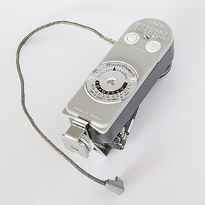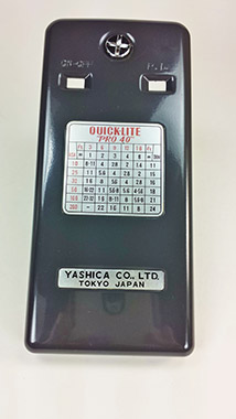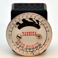 The handheld Yashica meter with selenium cell on the left below is the model YEM-31. Simon has a similar meter with the name “Unittic”. This is also commonly found with the name “Sunset Unittic Model 31”. The manufacturer is Showa Koden Co., Ltd. A copy of the manual is available from Orphan Cameras.