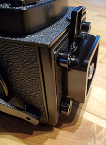 Walz Bay 1 hoods are also common from this period, this one mounted on a later Yashica-Mat. They fit without issue:
