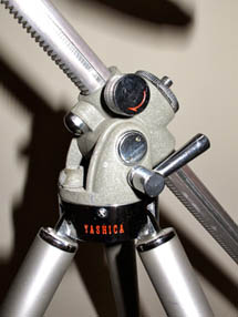 This is another nicely sculpted one, model unknown but from a similar period probably. The legs get quite spindly when fully extended, a feature that seems to be a common to most Yashica tripods: