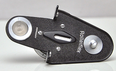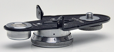 This is a self-explanatory accessory. There were apparently at least two types made, the one depicted below is very similar in appearance to the Minolta Autocord Panorama-Head referred to above.