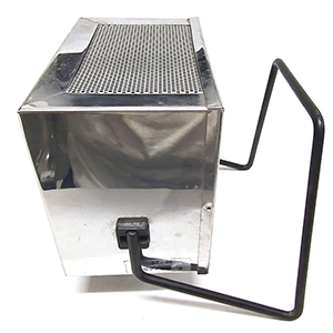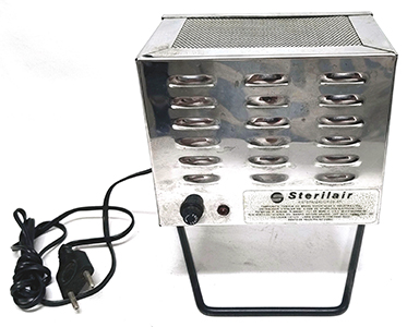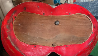 This particular example has some issues. The plastic covering of the lead is apparently biodegradable and the atoms have returned to whence they came, leaving only the metal braid. This seems to be a common problem affecting 100% of examples found but most have some small part of the covering remaining. The bigger problem is that one of the joining straps on the back of the reflector is missing.
