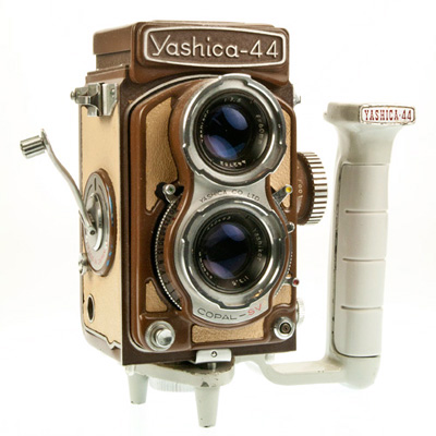 This is an extract from a Yashica US brochure covering the full range of products and originating from about 1959 (Yashica 44 and Yashica 44A shown together). Included are accessories for both 44 and 66 TLRs: