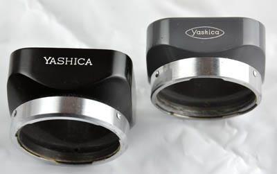 Referred to as “lens hoods” in both the very early Yashicaflex A “directions” and the latest Yashica Mat-124G “instruction booklet”, for much of the in between time, they were referred to as “sunshades” or “lens shades”.