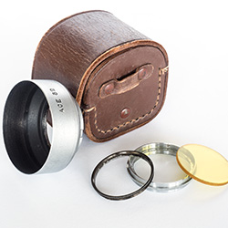 The hoods can be used by themselves or in conjunction with the yellow filter with stepped mount the front of which fits inside the hood with the rear part fitting over the lens mount. With or without adaptor, the mount size remains 32 mm.