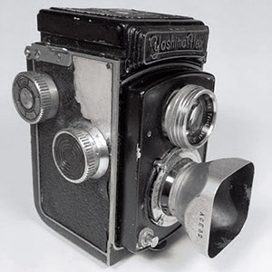 The Japanese language “Yashicaflex Photography” user manual for the 1957 Yashicaflex B (new model) features both the Minicam Synchron Master and an unknown folding reflector type and the camera is fitted with a lens hood, something not featured in pictures in English language user manuals from the period:
