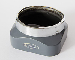 Although it looks darker in the left photograph, the colour of this hood matches the Silver Gray Yashica 44. The 44 hood below is a similar colour, Göran assures me that it is lighter than Charcoal Grey.