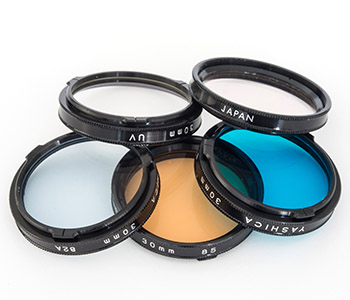 - Four Bay 1 filters with black rims: red, yellow and presumably UV and 1A (skylight).
