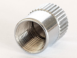 Early Yashicaflex A series cameras, models A-I, A-II, AS-I and AS-II, and the Yashica 12 and Yashica Mat-124, 124G and 124B have built-in provision for using a standard cable release. All other models have the early Leica style plain press button shutter release with a removable collar around the base. With that unscrewed, an adaptor for the cable release can be mounted. This sits over the shutter button and is commonly referred to as the “Leica nipple”. One was included with the Yashica branded self-timer above and below is a generic type from the collection of Tom Heckhaus: