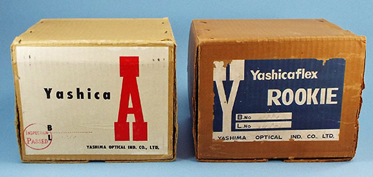 Here we have the Rookie outer box in company with a Yashica A type from perhaps only marginally later (the Yashica A was released 6 to 8 months after the Rookie):