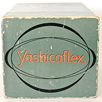 In export markets, the Yashicaflex A-II had its own box which was very similar but the background colour is a bright blue, the oval pattern around the red “Yashicaflex” is grey as is the other text, except “AII” which is white (no hyphen whereas the hyphen is usually there in documents):