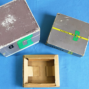 Given the empty space inside these boxes, it would be easy to think that one size would fit all 66 models and another for all 44 models but not so. These are the comparative sizes, remembering that the Yashica Flex S and Yashicaflex A boxes were from a similar period: