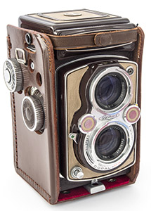 Boxes have value to collectors and therefore should be looked after. They add value to a camera and also like ever-ready cases, make it easier to pack safely if selling. I like boxes because they display the character of the times and the graphics styles reflect Yashima's/ Yashica's marketing vision for each of the models. They originally seemed to be designed for ongoing storage of the cameras and were clearly patterned on the Franke & Heidecke items for their Rollei models. They are also very similar to boxes provided by other Japanese makers, only the graphics and quality of finishes varying. No doubt that these items were also bought in.