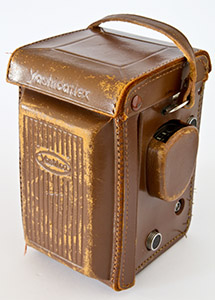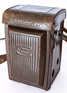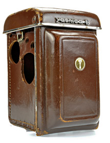 Other makers had similar designs with one piece fronts which makes me think that it was a Rollei copy but the only similar ones I have been able to find are for the Rollei Magic from the early 1960s and the soft case for the late Rolleiflex 4x4 and some very early cases from 1928 to 1932 period which had a similar one piece front and top but without the ribbed or embossed styling. Perhaps Japanese designers combined the simplicity of the original Rollei cases with the style of the two piece designs of the 1940s and early 1950s? Small makers like Yashima was then would have bought cases in to a standard design which probably also accounts for the similarity of many of the early cases from Japanese camera makers.