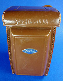 Later cases are the same design with updated design details. The latch changed to a more secure tongue and staple type. They now had a red liner and the “Yashica 635” letters were replaced with the plain “Yashica” badge which appeared on ever-ready cases in 1965: