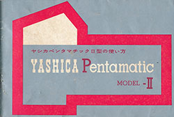 English Pentamatic II manual. This is not a translation of the Japanese version. It is a very basic adaptation of the original English Pentamatic manual with only a few of the photos and bare minimum information updated to the new model (plus increased availability of lenses). Its purpose is guesswork but its intended users are unlikely to have been mass market customers: