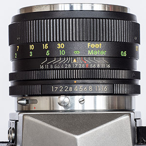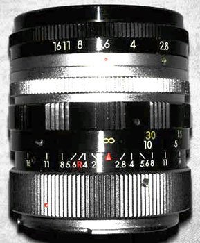 The reason why the focal length is 5.5 cm (and 5.8 cm for the Pentamatic II lens) rather than the 5 cm considered “normal” for the rangefinder lenses is that it is more difficult to design big aperture retrofocus designs for SLRs as the focal length becomes shorter and in the early days of SLRs, the longer lenses were more common. Slightly longer makes them better for portraiture but less useful for general photography.