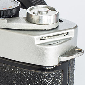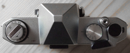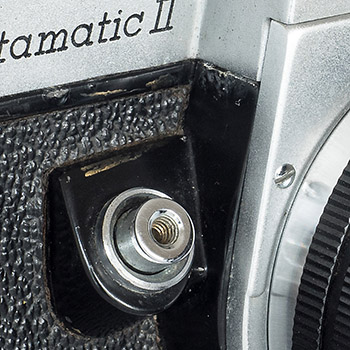 The vulnerable toothed wheel seems similar to the equally problematic version introduced in 1957 on Leotax Leica copies. I suspect that both copied the idea introduced on the 1956 Canon VT rangefinder models where the toothed wheel was better protected. Pentamatic on left (Pentamatic II shown, same as Pentamatic and Pentamatic S), Leotax TV2 on right.