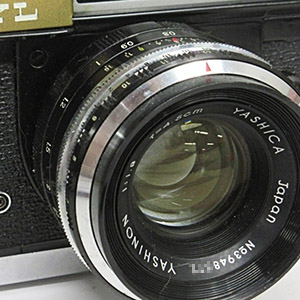 Approximately the first half of cameras in my database, including all the M-3s, have lenses marked “Yashinon-DX” and the second half have lenses marked “Yashinon”. Both are f/2.8 and are now marked 45 mm instead of 4.5 cm in keeping with their more recent origins.