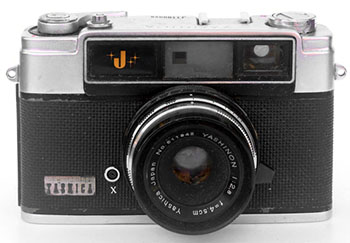 There are three budget models without exposure meters plus three little known variants of one. The bodies look similar to the Minister II but as that wasn't released yet, the inspiration and basis would have been the Lynx 1000. The Yashica J is claimed to be from 1961. The lens is still a Yashinon f/2.8 4.5 cm but the shutter has a reduced set of speeds from 1/25 to 1/300. The Yashica 35W has similar specs to the J, except for the absence of a self-timer, but seems cheaper built, e.g. it has a different covering to other models, the top plate is similar but plainer with less detailing and there are no strap lugs. Serial numbers suggest that it was released in 1962. Image 1 is the first version of the J, it is the same as in the user manual and features the earliest serial numbers. Image 2 with “Yashica” under the viewfinder is the second and more common “blackface” version and image 3 is the later “whiteface” version. Image 4 is the Yashica 35W: