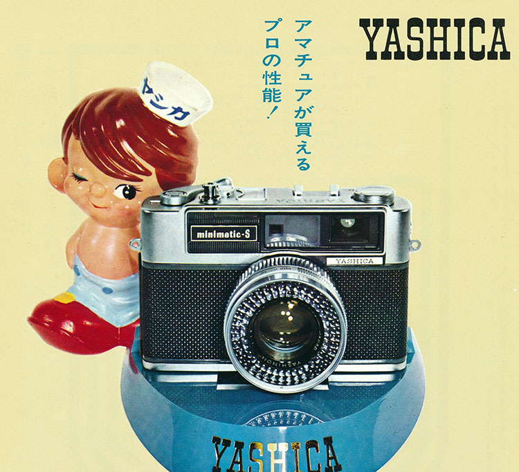After the Yashica YK and YL came a slew of similar rangefinder models initially based on the YL body but with new flat top plate. The base plate rewind crank was still there for the first new model released in 1960, the “Minister” (see also brochures above), but disappeared with the Minister II restyle which followed the modernised Lynx 1000 design cues.