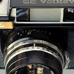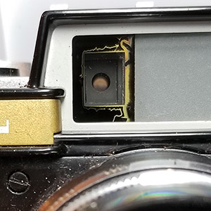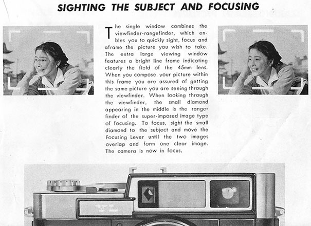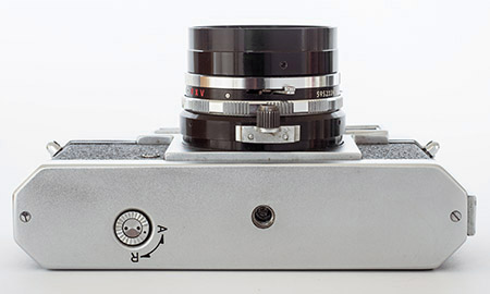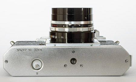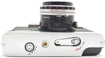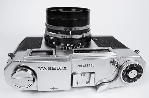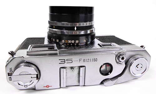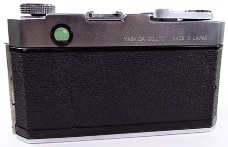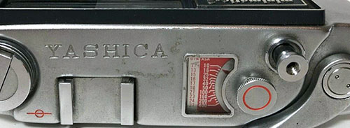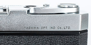 Given Yashima's established focus on quality at the lowest prices (profit through volume) and the vision of this camera as being for the “masses”, Yashima could have been forgiven for some cost cutting with this first model but there is little evidence of that. The coupled rangefinder has a long base and uses superior prisms instead of mirrors. The combined viewfinder/rangefinder window is not parallax corrected but does have a bright frame, already an improvement over most of the more expensive Leica copies available. Frame counting is in a window and resets automatically, not even something carried across into Yashica's first SLRs. The top plate also has a window for setting the DIN/ASA film speed reminder.
