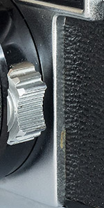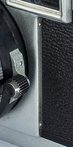 Another variation first noticed by Chris Whelan is that while most of the YL examples, including those in the f/2.8 and f/1.9 user manuals, have a diamond shaped mask in the rangefinder window, later cameras often (but not always) have a circular mask.
